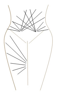 Wenn Sie nur das Volumen vergrößern wollen, ist dies durch zwei kleine Zugänge in der Unterbrustfalte möglich. Das Fetttransplantat wird von jedem Zugang fächerförmig eingebracht. Es verbleiben äußerlich sichtbar nur zwei kleine Narben (ca. 8-10 mm) in der Unterbrustfalte.